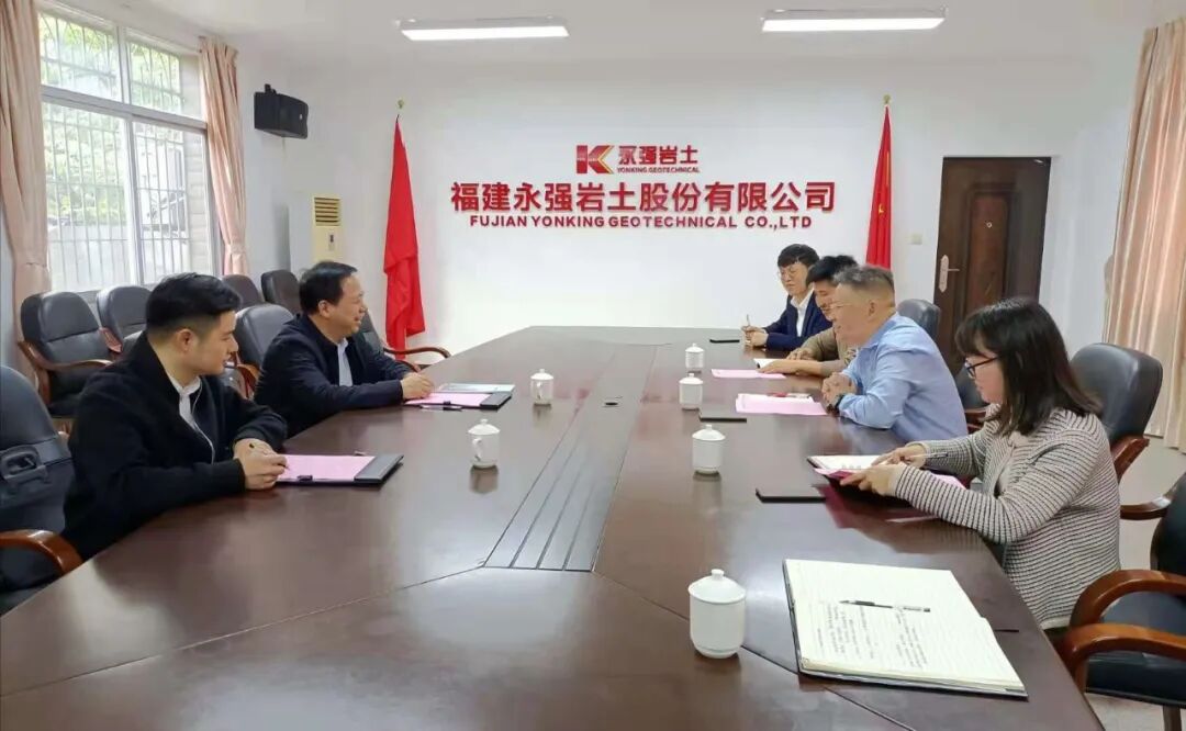 永强岩土许万强董事长主持汇报,并向领导介绍了永强岩土的基本情况、人才工作、科技十四五专项规划等。谢永华部长表示永强岩土在企业经营、人才、科研等工作的规划清晰、严谨且具有前瞻性,充分肯定已取得的成绩,并表示将会继续支持企业做好人才引进及培养工作,全力支持永强岩土做强做大。