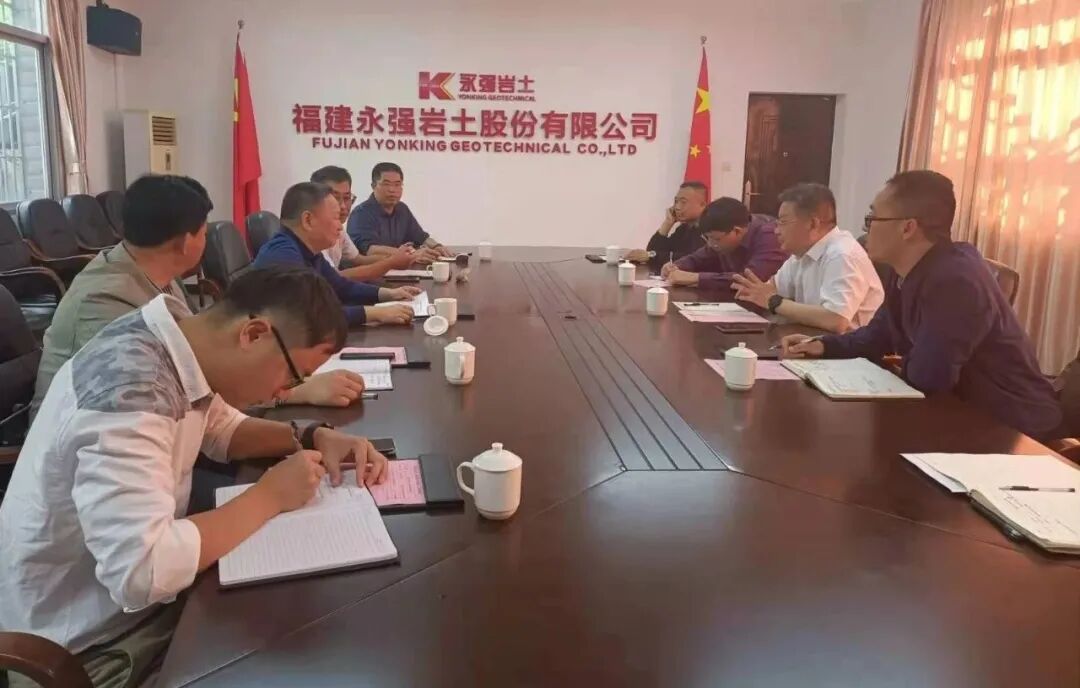 永强岩土许万强董事长主持汇报,并向嘉宾介绍了永强岩土基本情况、永强科技十四五专项规划及面临的机遇和挑战。
